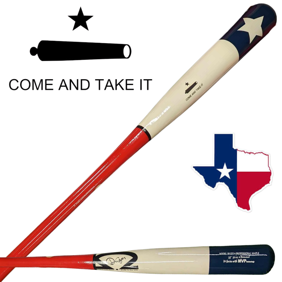 Channel your Lone Star pride with a handcrafted gamer that’s as bold as Texas itself. Finished in a striking red-white-and-blue Texas flag motif and emblazoned with the iconic “Come and Take It” inscription, this bat blends head-turning style with pro-grade performance.